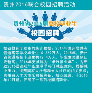 貴州省人才大市場結(jié)合多年校園招聘活動的經(jīng)驗,從提供簡單的招聘會展服務(wù),逐步演變成為提供高校就業(yè)招聘平臺、就業(yè)政策宣傳、企業(yè)形象展示、就業(yè)指導(dǎo)服務(wù)、高校畢業(yè)生人才庫等綜合性服務(wù),并建立與高校就業(yè)管理部門的長期合作機制,以更好推動高校畢業(yè)生就業(yè)工作。