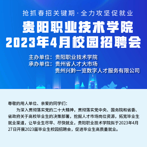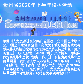 近二十年時間里,貴州省人才大市場主辦的校園招聘會涵蓋了貴州省內(nèi)各大高校,包括貴州大學(xué)、貴州師范大學(xué)、貴州財經(jīng)大學(xué)、貴陽學(xué)院、貴陽中醫(yī)學(xué)院、貴州職業(yè)技術(shù)學(xué)院等。每年根據(jù)高校畢業(yè)生的就業(yè)特點開展十多場專場校園招聘會,組織上千家單位提供上萬個招聘職位。每場校園招聘活動,貴州省人才大市場都精心組織,根據(jù)學(xué)校自身的特色專業(yè)挑選出百余家需求專業(yè)契合的單位進入校園,并與高校緊密合作進行宣傳和組織,大大提高了求職成功率,每年達成錄用意向數(shù)千人。招聘活動期間,還向?qū)W生宣傳最新的就業(yè)創(chuàng)業(yè)政策,以實際行動踐行著“以人為本,服務(wù)社會”的宗旨,營造積極就業(yè)的良好社會氛圍。