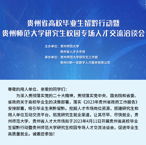 貴州省人才大市場是貴州省人力資源專業(yè)服務(wù)和招才引智的標(biāo)志性窗口,本著“以人為本、服務(wù)社會、一流設(shè)施、一流水準”的宗旨,致力于提供“一體化”的專業(yè)人力資源服務(wù)。作為人力資源和社會保障部、貴州省人力資源和社會保障廳開展貴州省高校畢業(yè)生就業(yè)活動的政府公共服務(wù)平臺,貴州省人才大市場充分發(fā)揮政府人才機構(gòu)在人才交流和市場化配置中的積極作用,進一步促進貴州省高校畢業(yè)生就業(yè)服務(wù)工作,幫助企業(yè)引進優(yōu)秀畢業(yè)生,合理引導(dǎo)、促進高校畢業(yè)生就業(yè)。